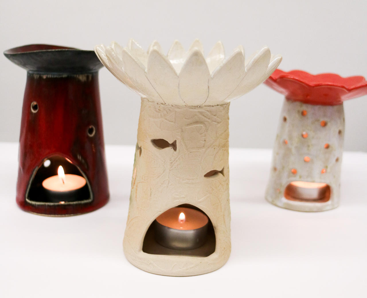 Saaremaa käsitsi valmistatud küünlaalused, mison põletatud kõrgkuumusahjus.
